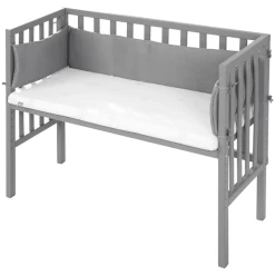 Cama supletoria para camas con somiercolor: blancosuperficie de reposo: ancho x largo 40 x 90 cmDimensiones con ruedas: Ancho x largo x alto 45 x 94 x 89 cmSuperficie de reposo regulable en altura que puede ajustarse a la altura exacta de todas las camas con somierDos correas facilitan la fijación a la cama de los padresRuedas de parquet estables con función de frenoClima óptimo para dormir gracias a la placa base firme con ranuras de ventilación que permiten que el aire circule bajo el colchónHigiene del colchónAireDimensiones: ancho x largo x alto 40 x 90 x 4,5 cmMaterial de la cubierta superior: 100% poliésterMaterial de la cubierta inferior: 100% algodónMaterial de relleno: espuma, 100% poliésterInstrucciones de cuidado de la funda del colchón: lavable hasta 60º C, secadora con reducción de temperaturaNidoDimensiones: ancho x largo 27 x 170 cmMaterial de la cubierta: 100% algodónMaterial de relleno: 100% poliésterInstrucciones de cuidado: lavable hasta 30º C, secado en secadora a temperatura reducidaSábana bajeraColor: blancoDimensiones: ancho x largo 40 x 90 cmMaterial: 100% algodónInstrucciones de cuidado: lavable hasta 60° C, apto para secado en secadora con reducción de temperatura