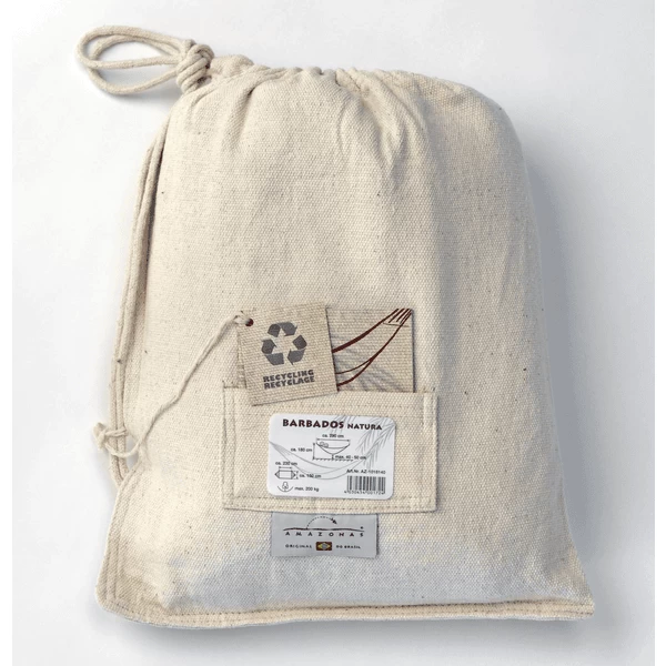 Hamaca de Barbados con bolsa de tela reutilizable de colores coordinados.