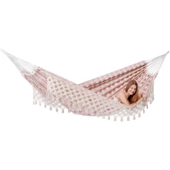 La hamaca XXL Río con borde decorativo anudado a mano es una verdadera joya para el interior y el exterior.