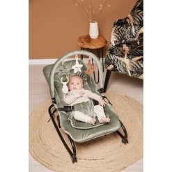 - La cabeza, el cuello y la espalda del bebé se apoyan de forma óptima gracias a la profundidad adaptada en el asiento del balancín
