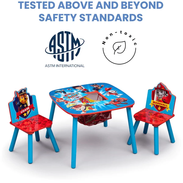 - Contenido: Una mesa con compartimento de almacenamiento y dos sillas pequeñas