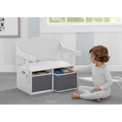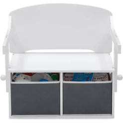 - Dos compartimentos de tela bajo el asiento ofrecen un amplio espacio de almacenamiento para libros, juguetes o material de pintura.