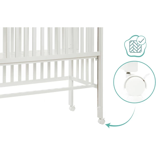 A través de las rejas abiertas y el piso perforado tu bebé siempre puede tomar suficiente aire fresco y te permite controlarlo, ya que las vistas de los alrededores no están bloqueadas. La madera de haya maciza da