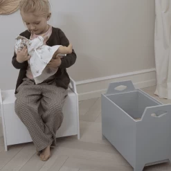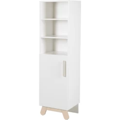 El estante blanco de madera de la pared ofrece espacio para almacenar libros, juguetes de peluche u otros objetos favoritos. El producto se caracteriza por una construcción estable y atemporal Design .