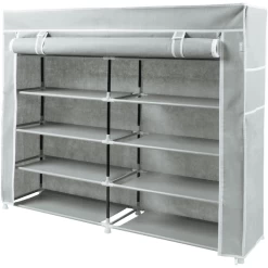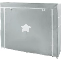 Si el armario textil de la habitación de los niños ya ha tenido su día, puede utilizarse como almacén y armario para zapatos en el pasillo o como estante sin la cubierta de tela. El robusto tejido del armario, que ha sido probado para detectar sustancias nocivas, puede limpiarse y es fácil de limpiar. El armario textil se ha desarrollado en Alemania y es fácil de montar gracias a su sistema de enchufe con Metal l varillas y conexiones de plástico.