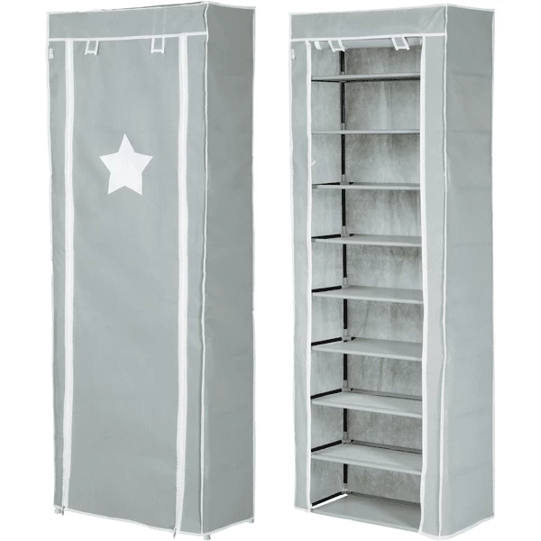 Si el armario textil de la habitación de los niños ha tenido su día, servirá bien como almacén y armario para zapatos en el pasillo, por ejemplo, o como estante sin la cubierta de tela. El robusto tejido del armario, que ha sido probado para detectar sustancias nocivas, puede limpiarse y es fácil de limpiar. El armario textil fue desarrollado en Alemania y es fácil de montar gracias a su sistema de enchufe con varillas Metal y conexiones de plástico.
