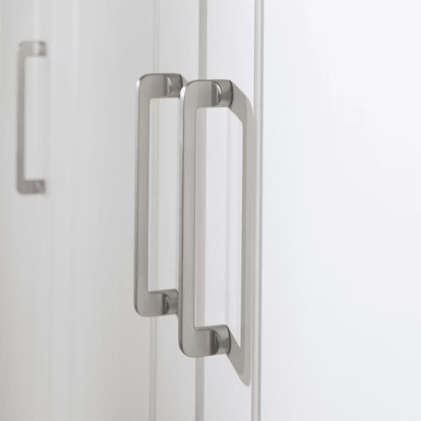 La carcasa tiene 199 cm de altura para tener más espacio de almacenamiento y está hecha de un tablero de aglomerado recubierto de melamina, especialmente resistente.