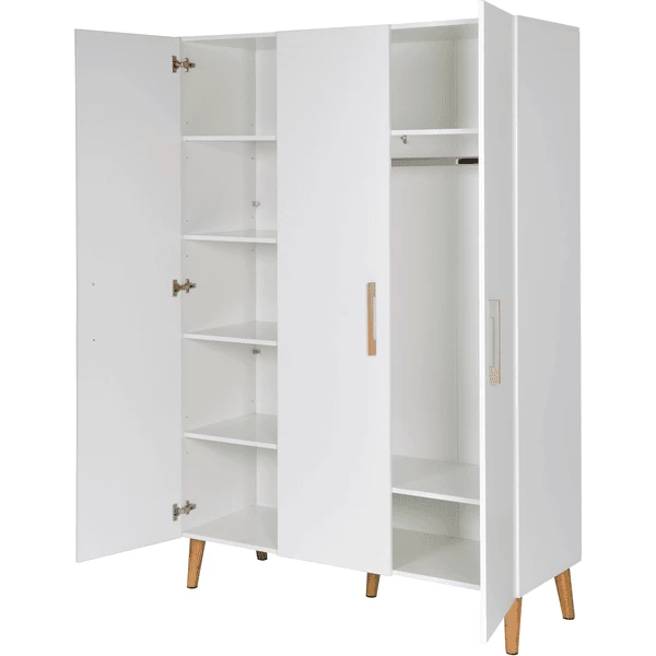 El elegante armario de 3 puertas puede ampliarse perfectamente con otros muebles para bebés y niños de la serie «Mick» para crear una habitación de bebé o infantil completamente amueblada con muebles de sistema que crecen con el niño.