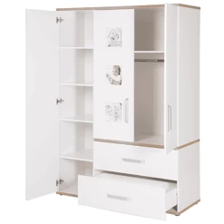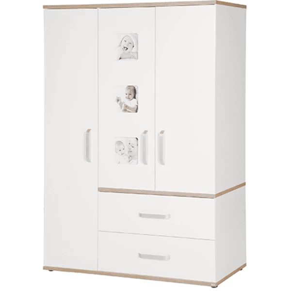 Elementos decorativos en roble Sanremo Sand son las características especiales de los muebles de la serie de habitaciones infantiles roba Pia. En esta habitación infantil, la decoración especial se combina con los conocimientos técnicos. El cierre suave de las puertas y los cajones aden es imprescindible en este caso. Los marcos de fotos integrados en una de las puertas del armario Pia son un reclamo especial: con fotos personales, se convierte en una pieza única.