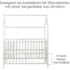 La cuna casa ROBA es una cuna auxiliar ajustable en altura y convertible