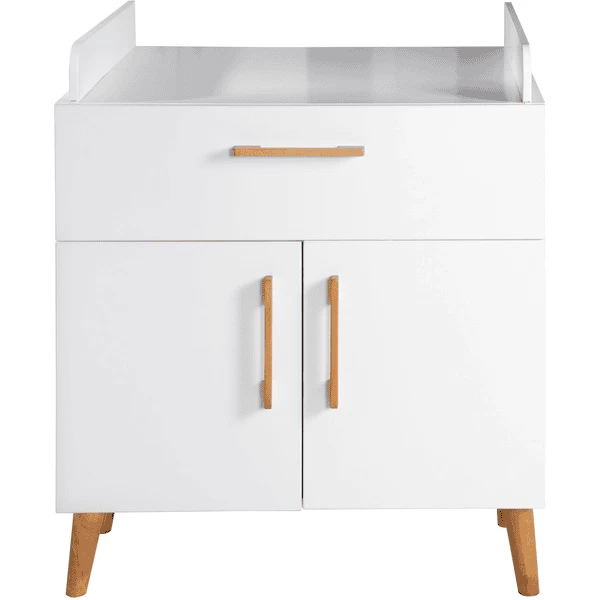 El cambiador ofrece mucho espacio para guardar los utensilios de cambio. Así tienes todo a mano para el cuidado del bebé. Con otros muebles infantiles de la serie «Mick», puedes crear una elegante habitación infantil o de bebé. El cambiador de bebés con cambiador roba es un auténtico todoterreno que le servirá durante muchos años. El cambiador estable puede utilizarse como asiento elevado para su hijo de guardería, de modo que pueda ayudarle a vestirse fácilmente en una posición cómoda de pie. Más adelante, el mueble cambiador puede utilizarse como cómoda en el salón o en el cuarto de los niños.