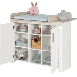 La roba unidad de cambio de bebés con accesorio de cambio de pañales es un verdadero todo terreno. La resistente unidad de cambio puede utilizarse como un asiento elevado para su hijo de jardín de infantes, para que pueda ayudarle fácilmente a vestirse en una posición cómoda de pie, y más tarde puede utilizarse como una cómoda en la habitación del adolescente.