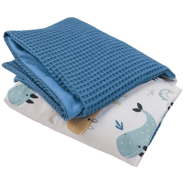 Ullenboom Funda para cambiador Waffle Pique Motivo Ballenas Azules 75 x 85 cm